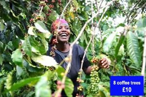 You can choose from: Bibles, School supplies, Chickens, Mosquito net, Goat, School lunches, Banana trees and Coffee bushes. See the details below.