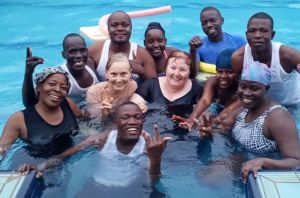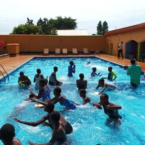 Swimming pool fun for pupils, staff and CRU Trustees, March 2025