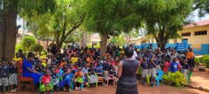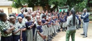 Watch here the children totally engaged in the praise led by friends from Julius and Judith’s church – with Susan, the School Matron, in the foreground as one of the lead singers! Children engaged in Praising God