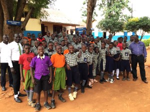 March Trustees’ Visit, L to R: Fred Kutosi Deputy Head Acad, Julie Parker, Meriel Carboni, Sebastian (Director HUGS Special Needs School), Dr Richard Bircher (Director of HUGS), Helen Whitehead, Fred Gumasi Deputy Head Admin, Rhona Marshall, Dan Muriiya Headteacher