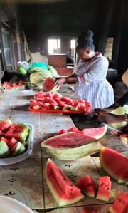 Susan the Matron cutting watermelon for the Party