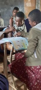 Pupils using the new text books in class
