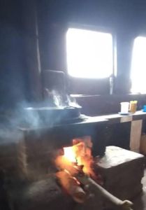 Smoking kitchen chimney before replacement funded by donors