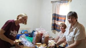 Trustees Meriel, Helen and Rhona sandwich making for School Party