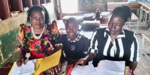 Deaf learner with her guardian and sign language teacher (right)