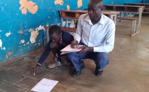 Watch below as Janet Namugaya teaches the main P1 class (first year primary) and Dickson Lubanga helps the deaf pupils. You will see one boy is a lot taller and older than the others. He’s called Moses and is 12 years old but only started school recently as his family did not think a deaf child could be educated. Thank God for the great teaching he is now receiving at the School and the way he is developing as a person. Janet and Dickson teaching