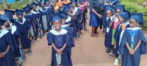 The Nursery graduates lining up ready to lead the march round Kamuli Town – a great way to express their joy for a successful school year as well as to advertise the School to parents in Kamuli.